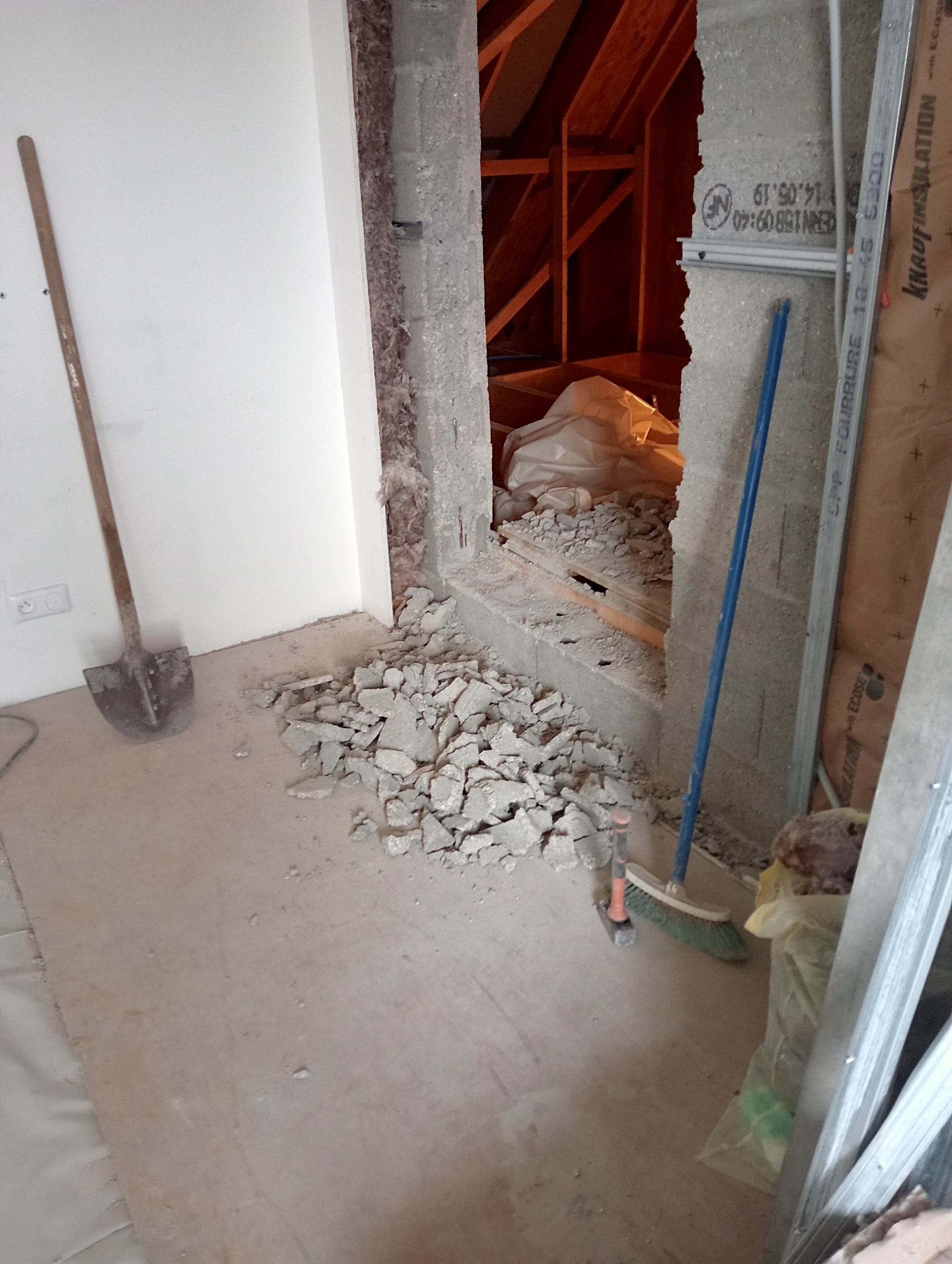 Démontage d'une cheminée et pose de placo isolation et finition