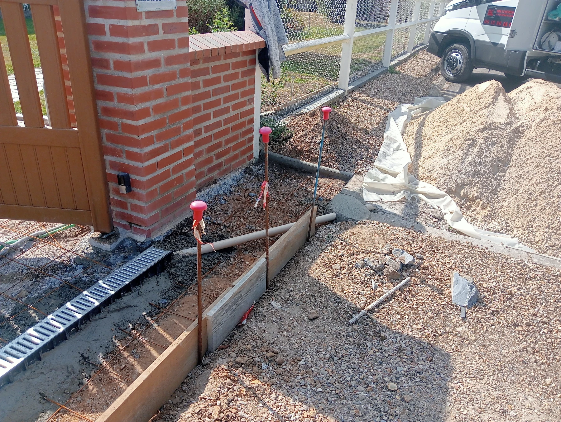 Pose d'une cloture rigide avec soubassement chantier secteur grand couronne