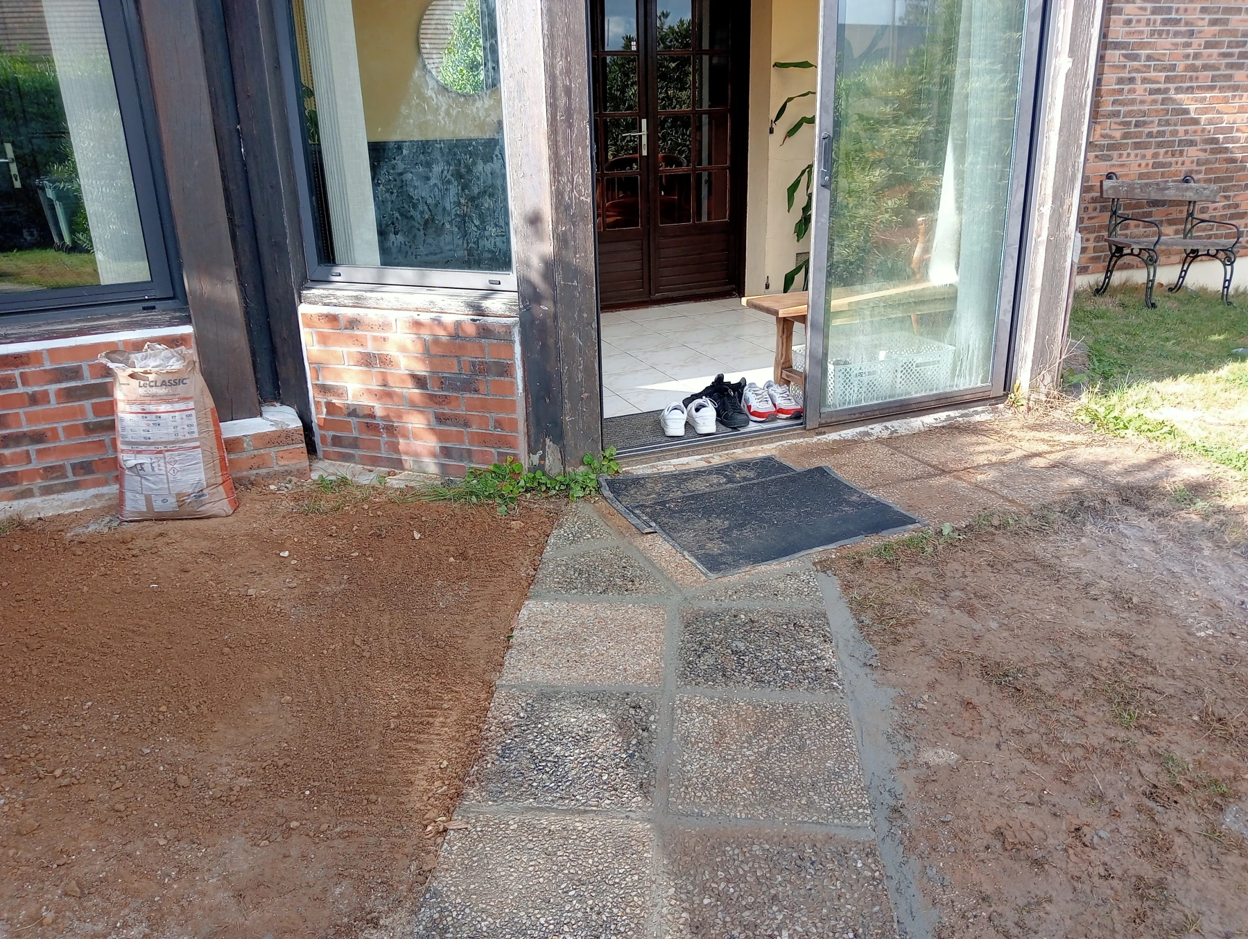 Travaux de rénovation sur entrée de maison en béton