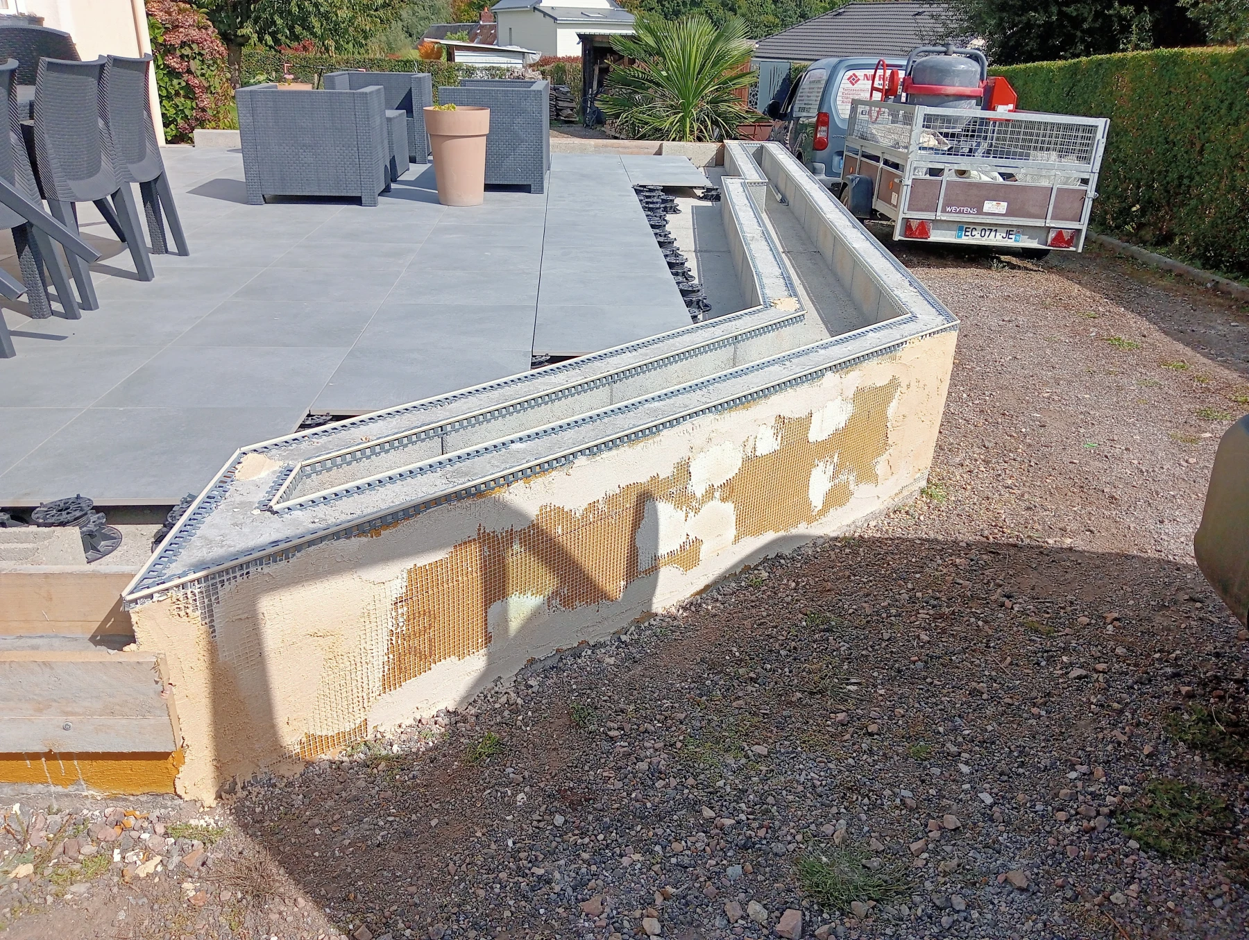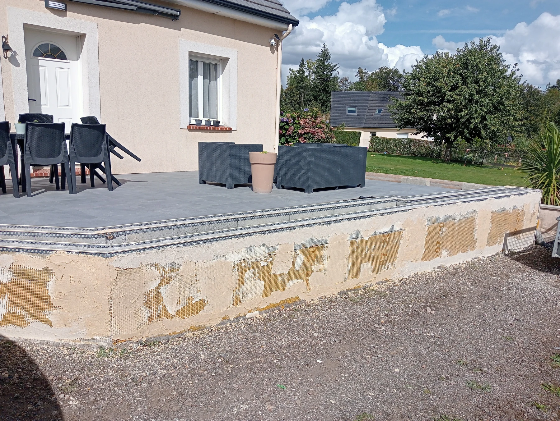 Création d'une jardinière avec enduit gratter ton pierre secteur Bardouville