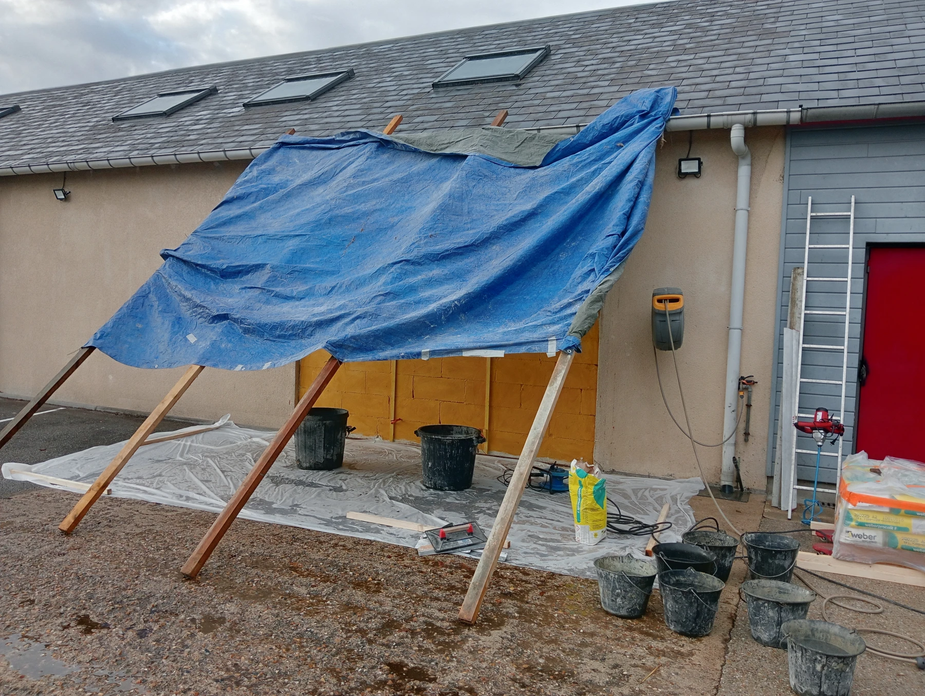 Mise en place d'un accrocheur sur le Siporex avant la mise en place de l'enduit monocouche ton pierre finition gratté