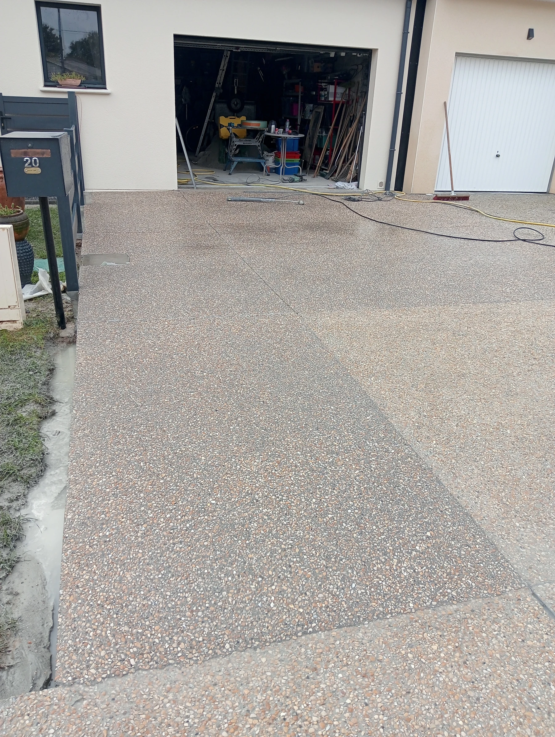travaux de béton désactivé sur une entrée carrossable et terrasse