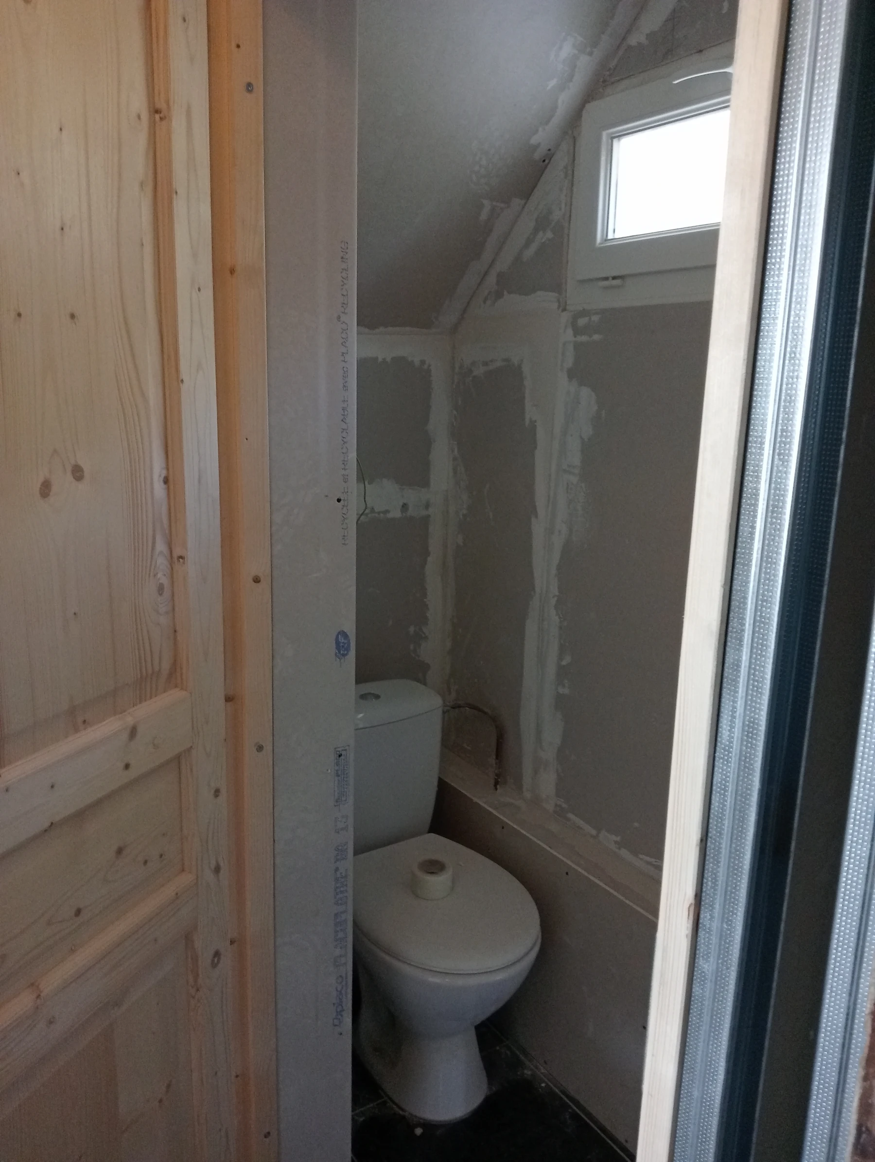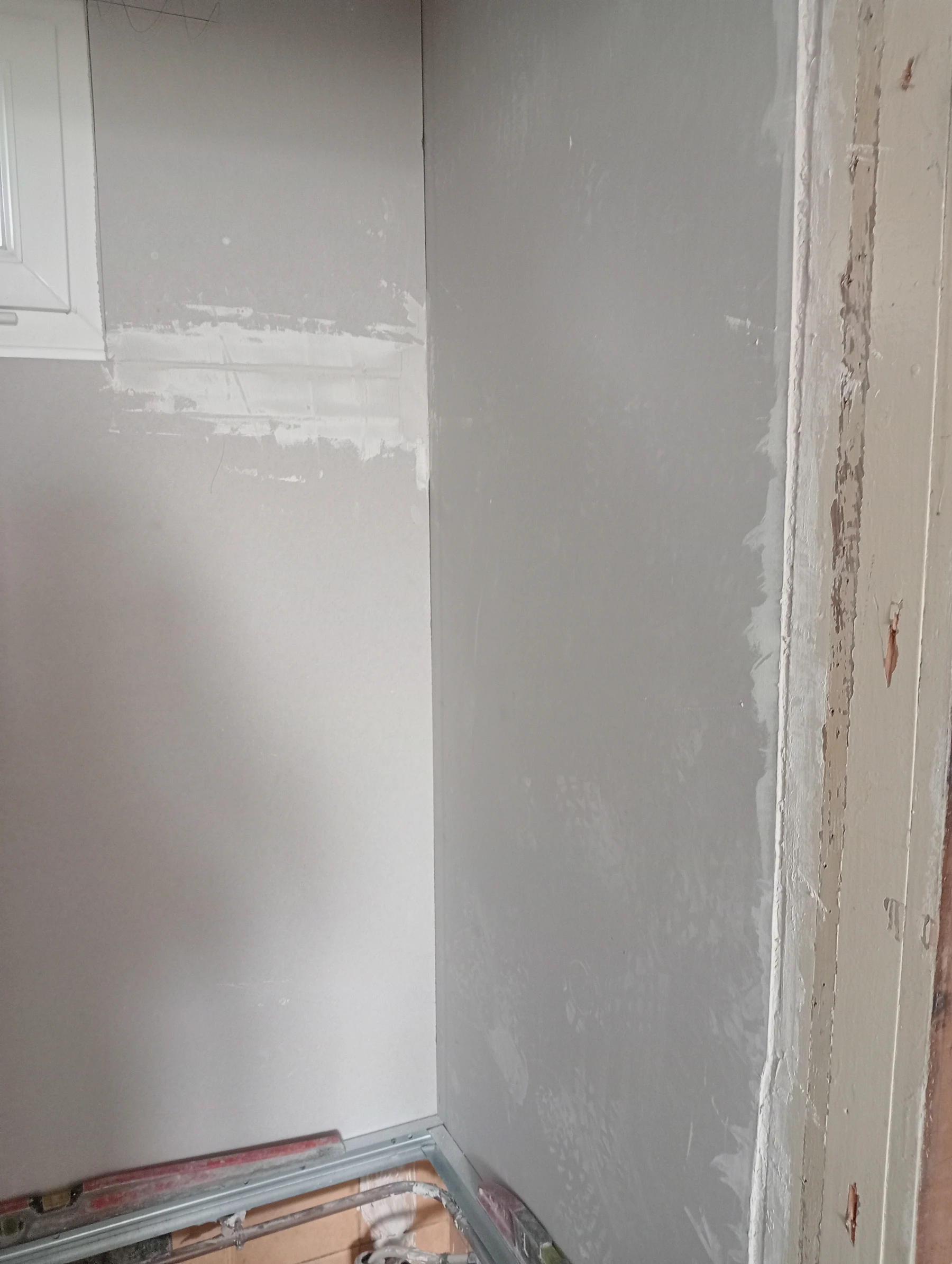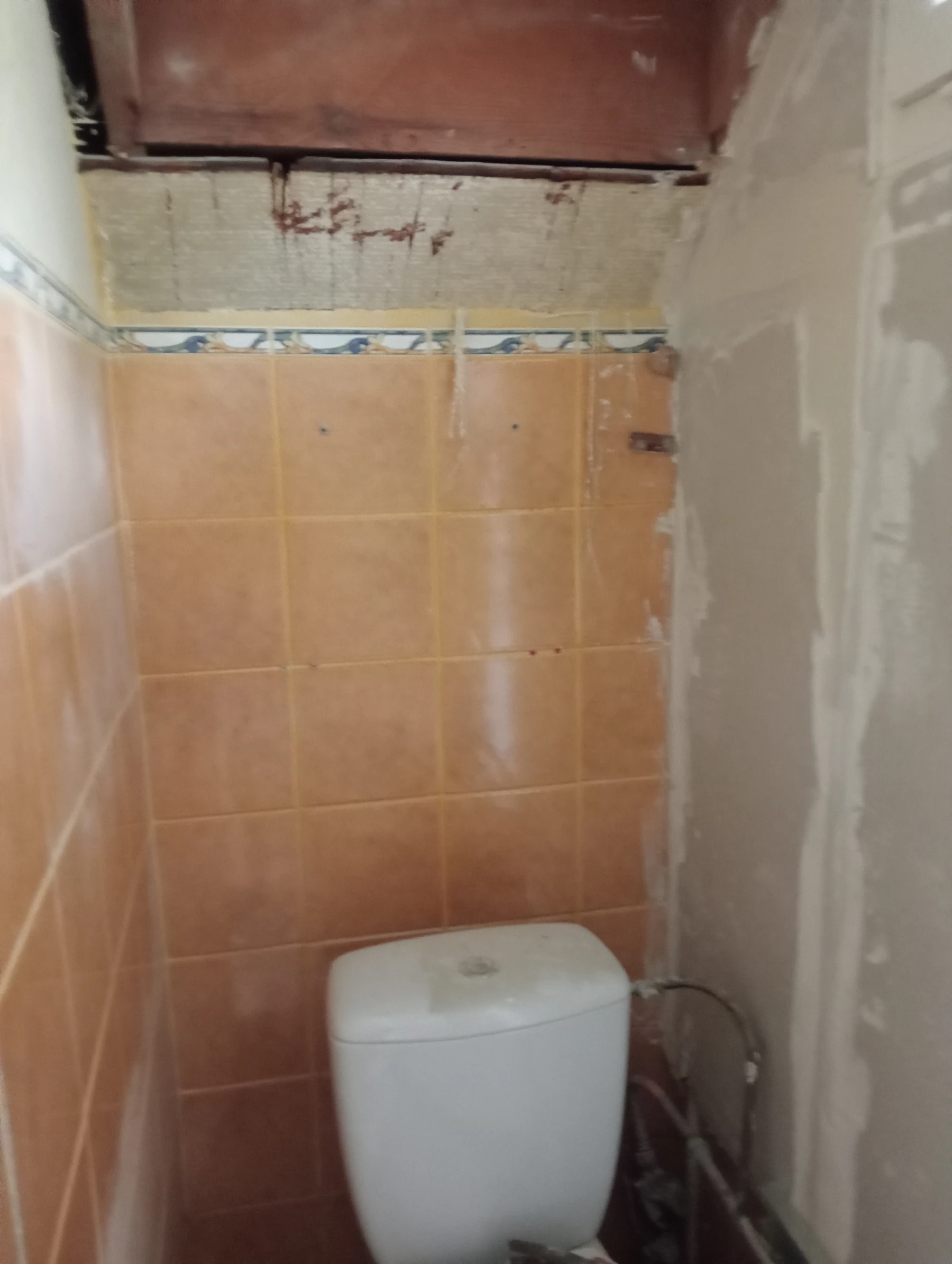 Rénovation dans un toilette et sur un mur coté couloir