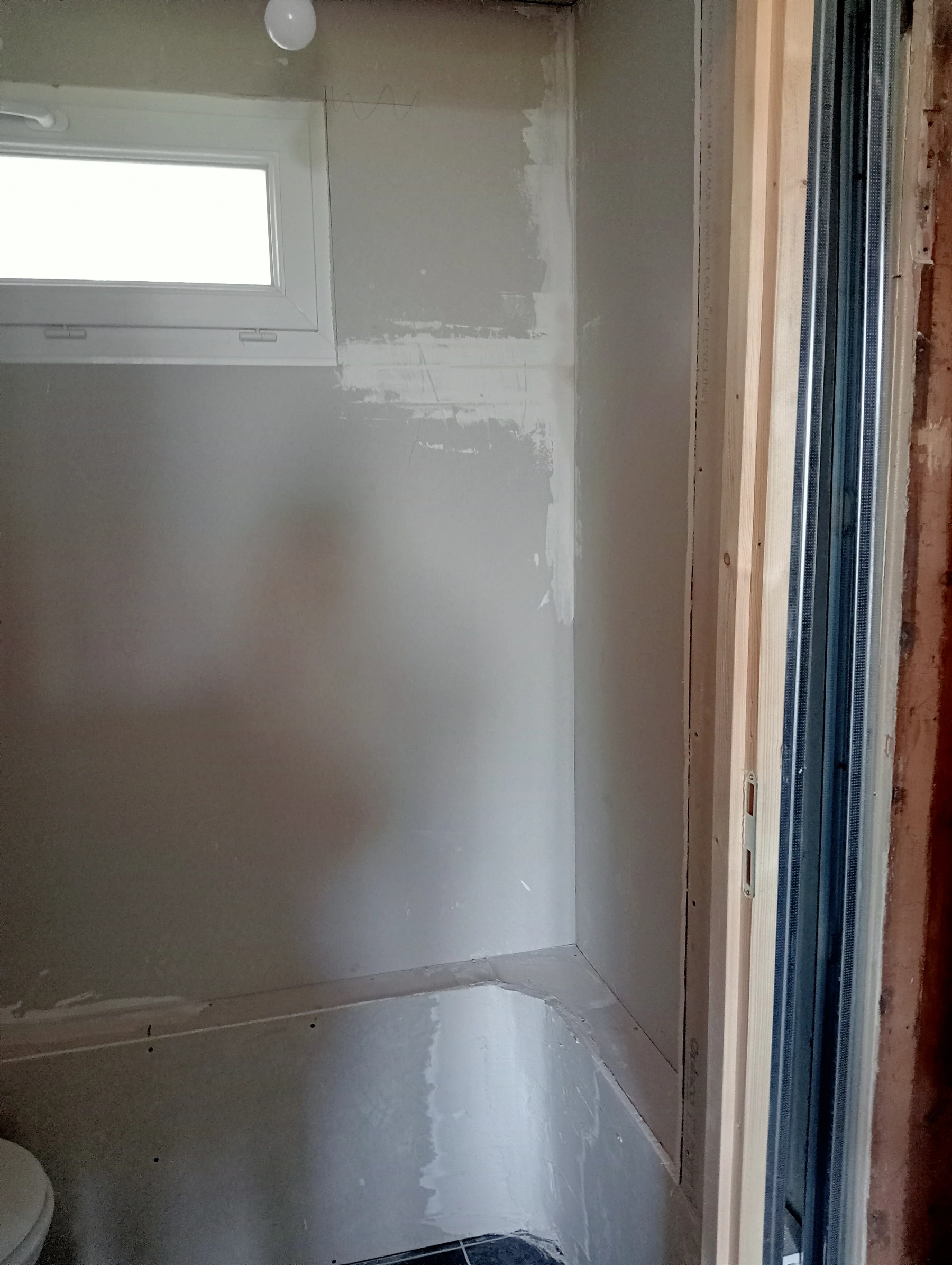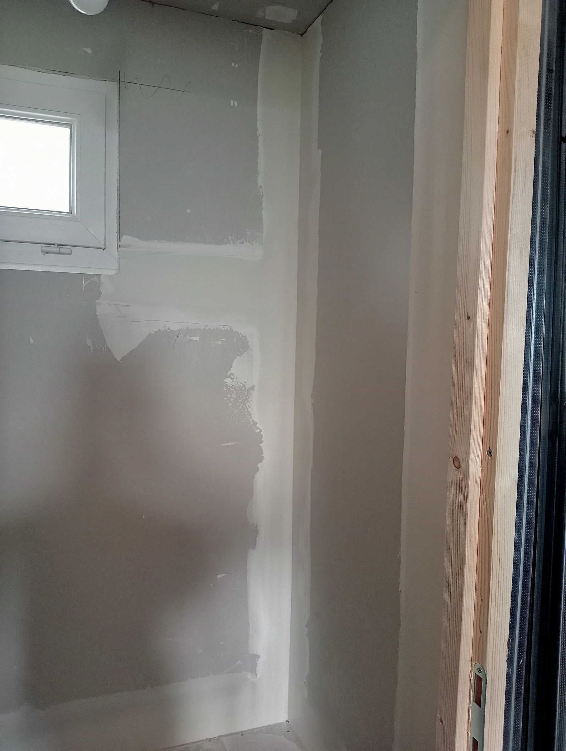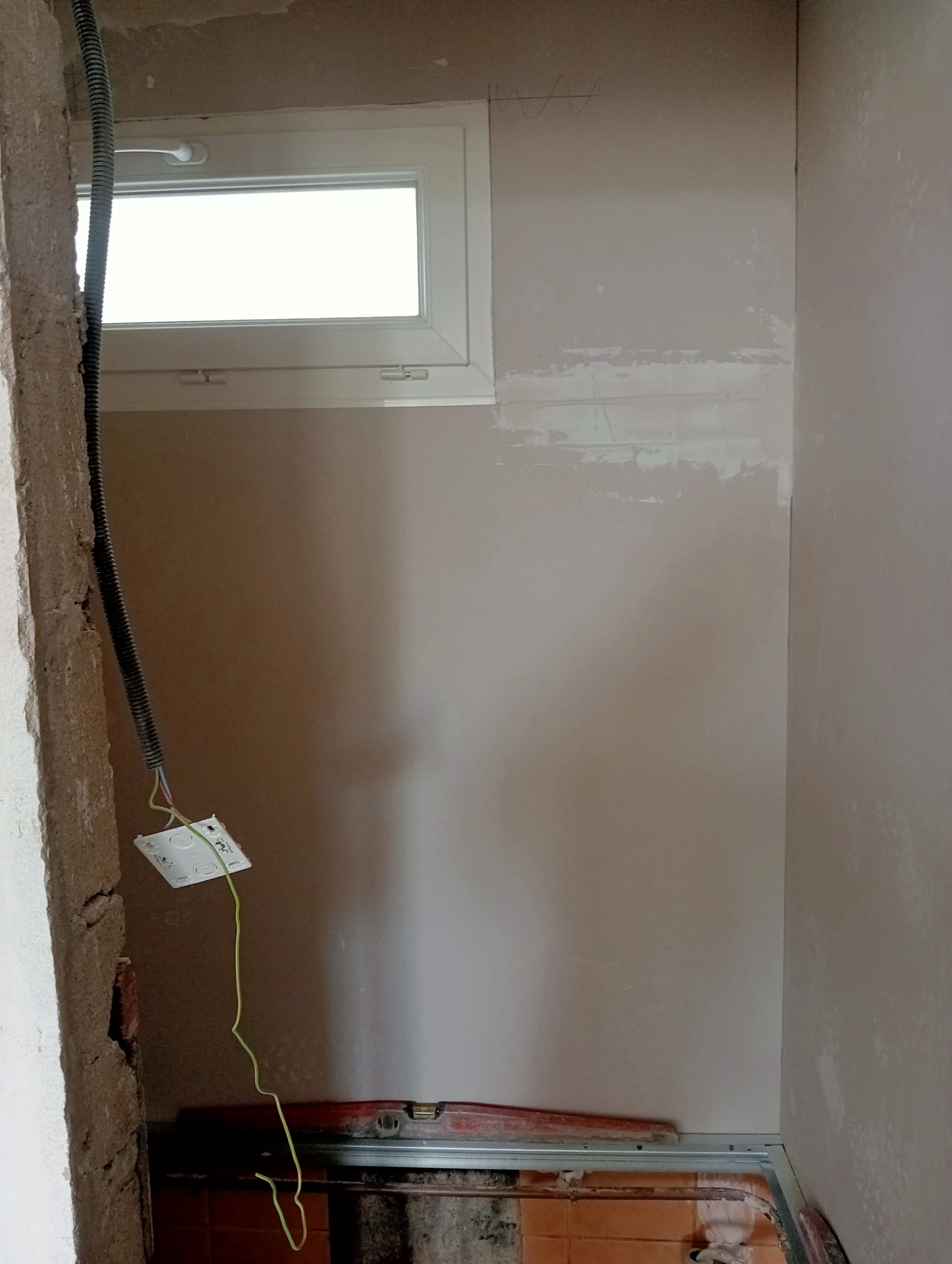 Rénovation dans un toilette et sur un mur coté couloir