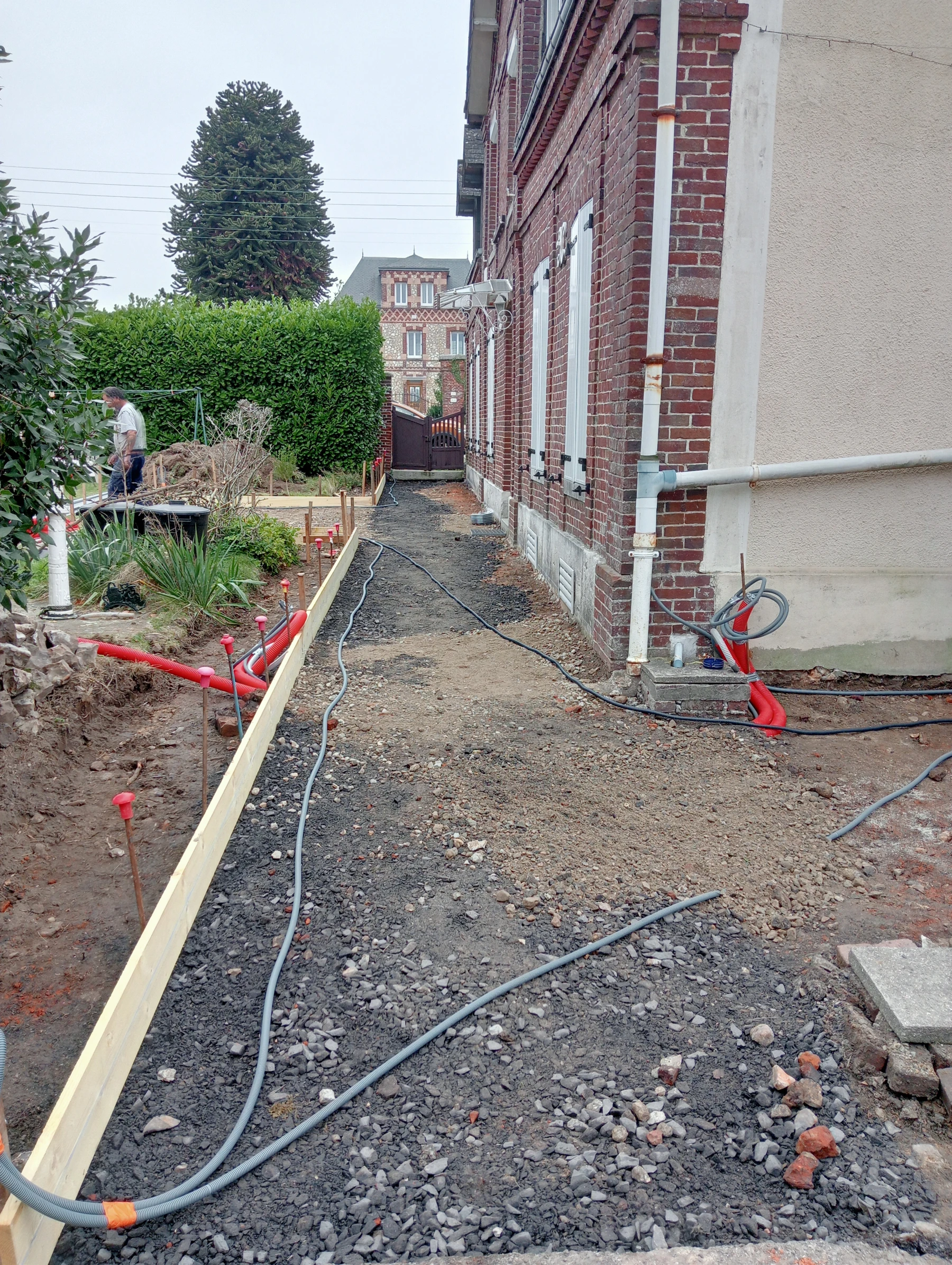 Travaux d'aménagement en gravier gris bleu chantier à Anceaumeville 76