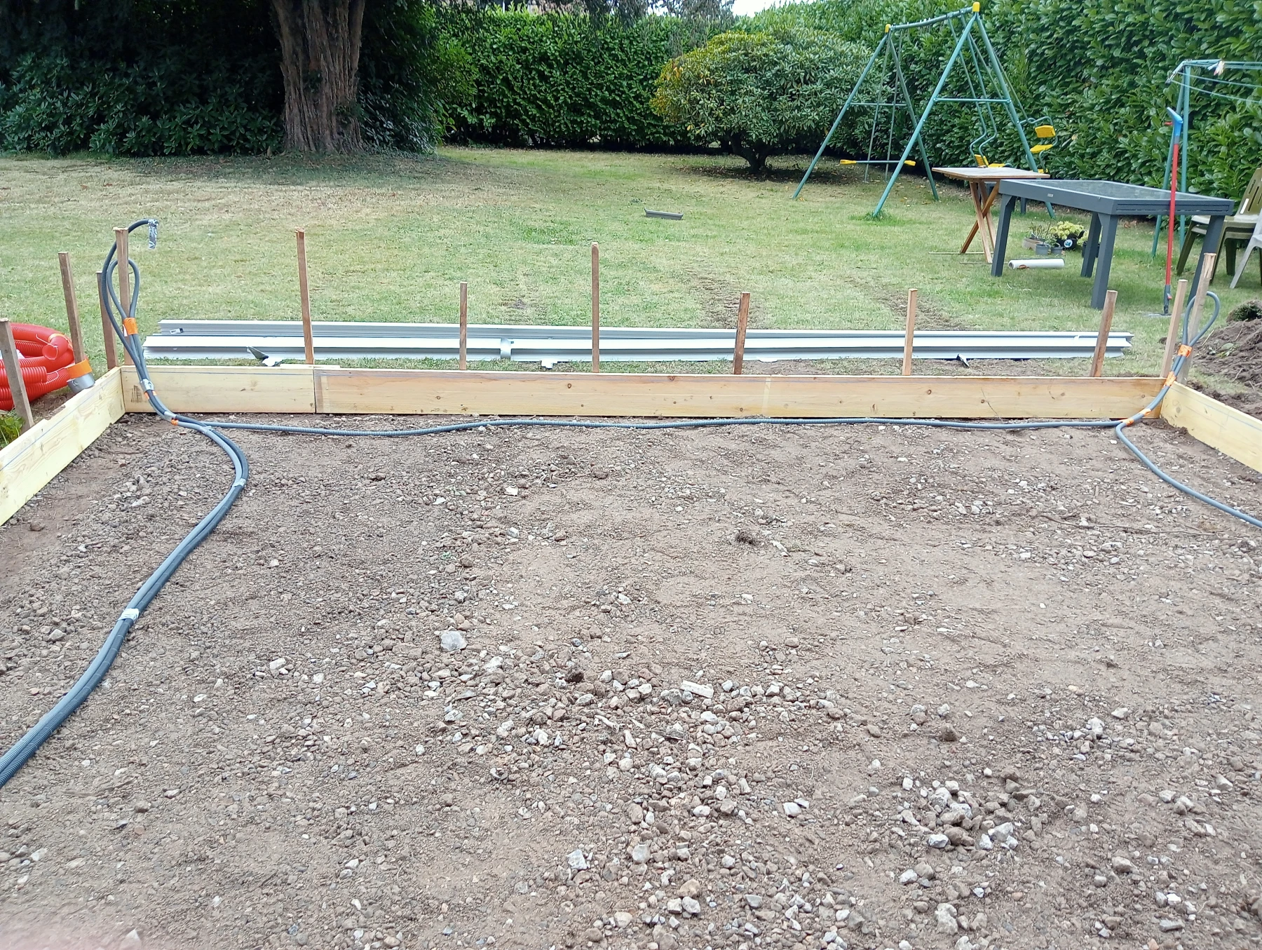 coffrage et coulage d'un béton autour d'une piscine chantier a eslettes