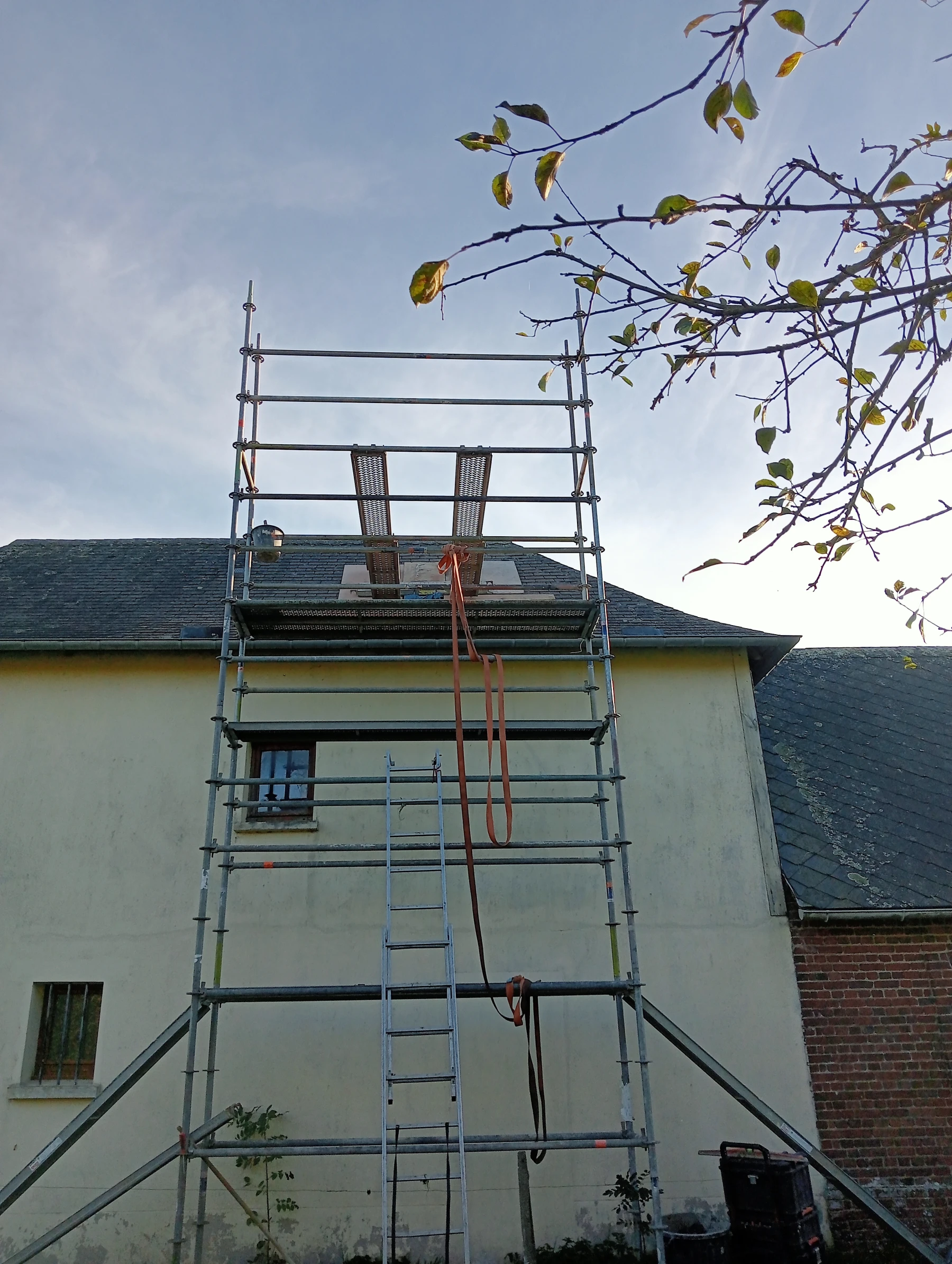 Ouverture dans un pignon pour accéder au grenier chantier roumarre