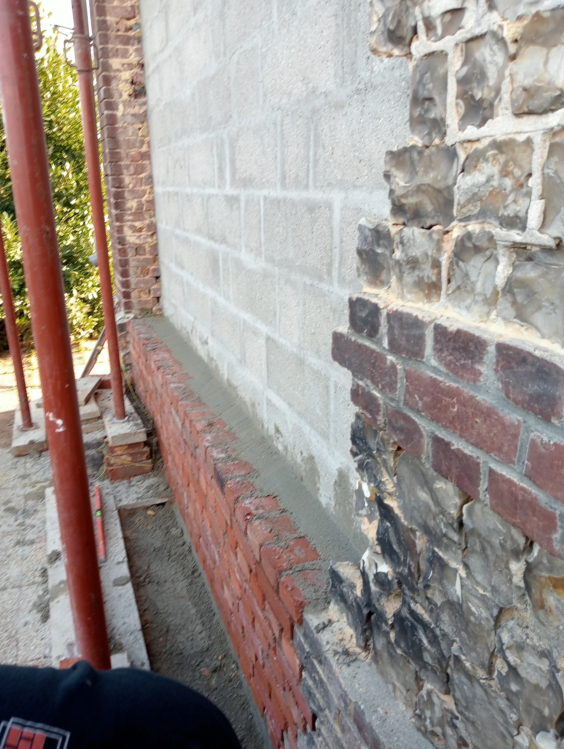 Travaux de maçonnerie avec pose de couvre mur plat aux dessus avec finition enduit gratté gris clair